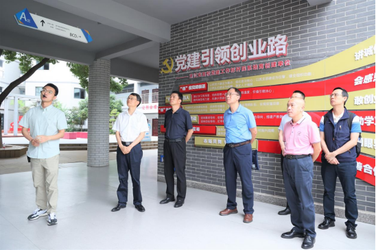 会前,王磊一行参观了学校创业园,对学校所取得的创业教育的办学特色与成就表示赞叹。