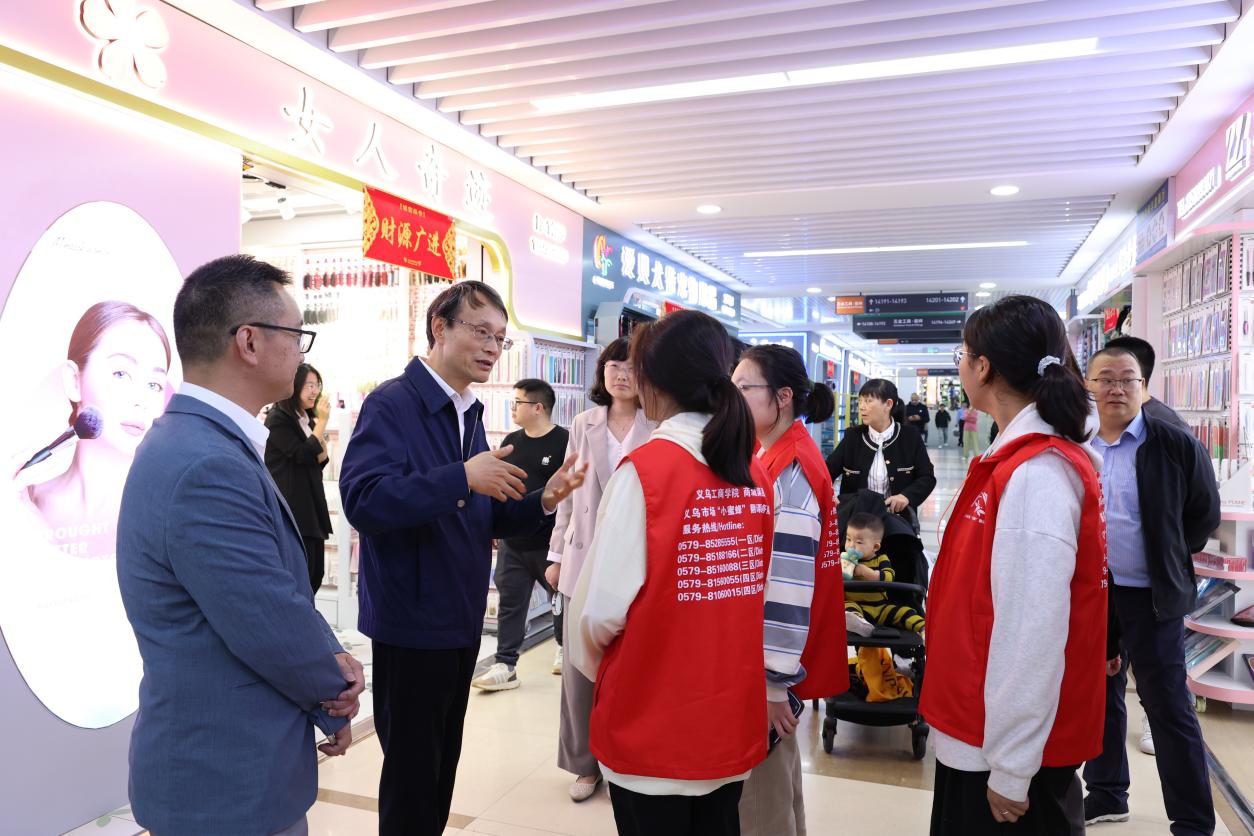 10月11日下午,义乌工商职业技术学院党委书记李昌祖一行到国际商贸城二区开展“追随足迹、牢记嘱托、感恩奋进、再创辉煌”现场学习时,专程看望了正在国际商贸城参加翻译服务顶岗实习项目的外语外贸学院的同学们。