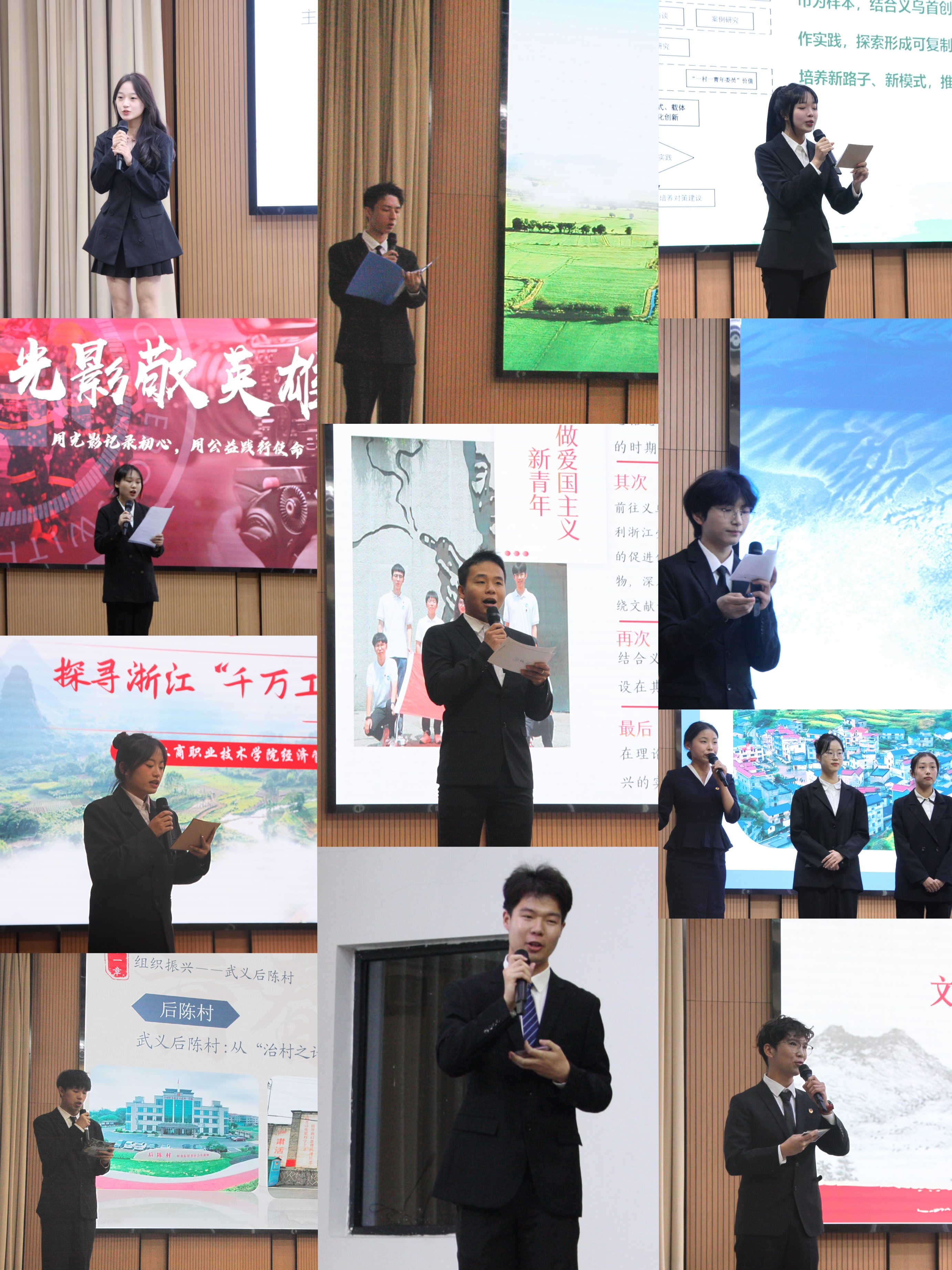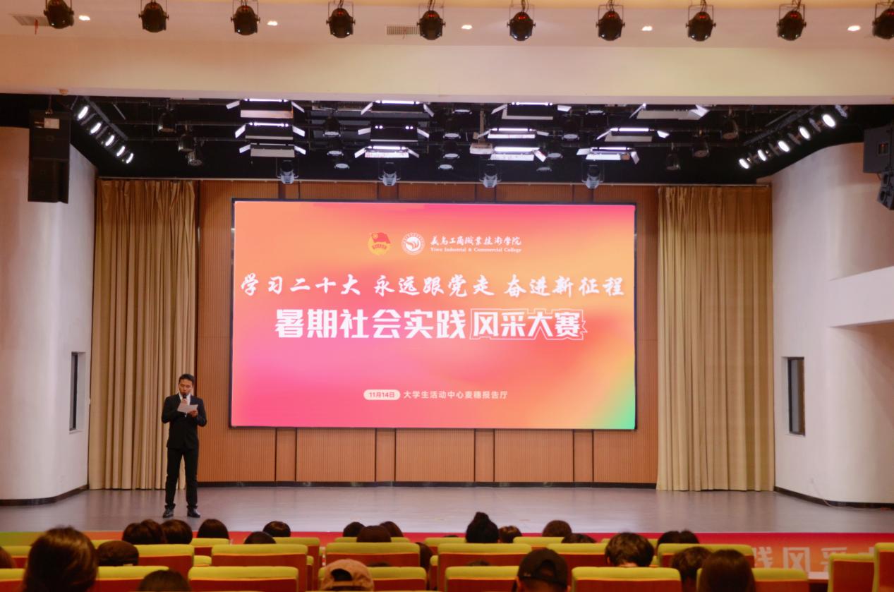 11月8日下午,校团委举办“学习二十大 永远跟党走 奋进新征程”暑期社会实践风采大赛。比赛现场,学校200余名师生共上一堂立足“社会大课堂”的国情社情思政课,以沉浸融合式、青年主体式的“大思政课”新模式,聚焦“发展成就”“文明文化”“民生福祉”“美丽中国”“中国之治”五个主题,共同感悟义工商青年学子躬身社会实践、感应时代脉搏的青年力量,引发师生共鸣,为奋进青春注入了满满正能量。
