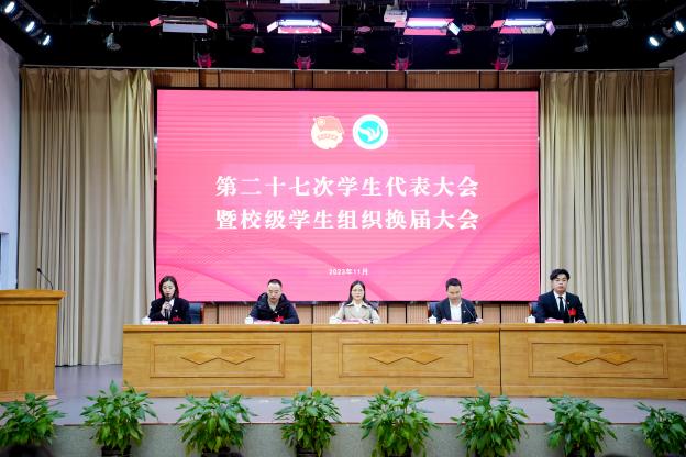 会议对2023年度明星学生干部进行表彰。大会听取并审议了校第二十六届学生会工作报告,并选举新一届校级学生组织主席团成员。