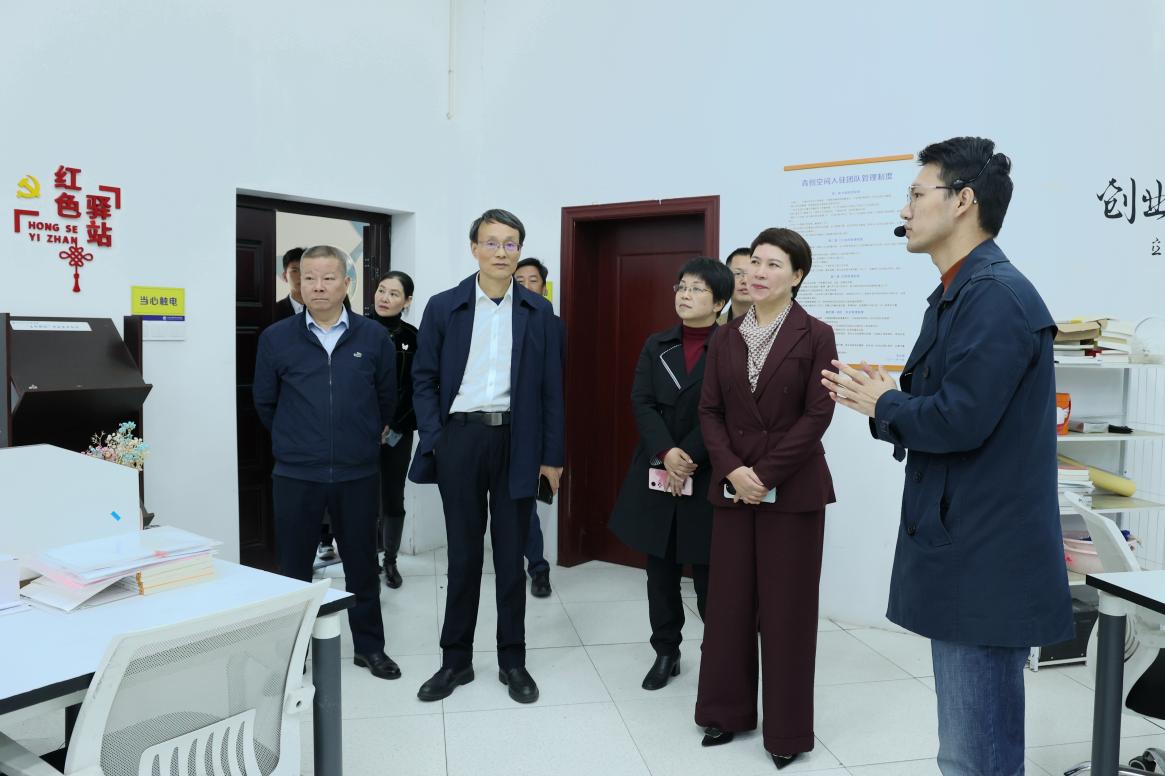 11月22日,金华市中华职业教育社主任、金华市政协副主席胡晓杭一行莅临uedbet,uedbet体育考察调研,走访考察了学校创业园与创意园。义乌市政协副主席刘瑜君,学校党委书记李昌祖、院长马广陪同调研。