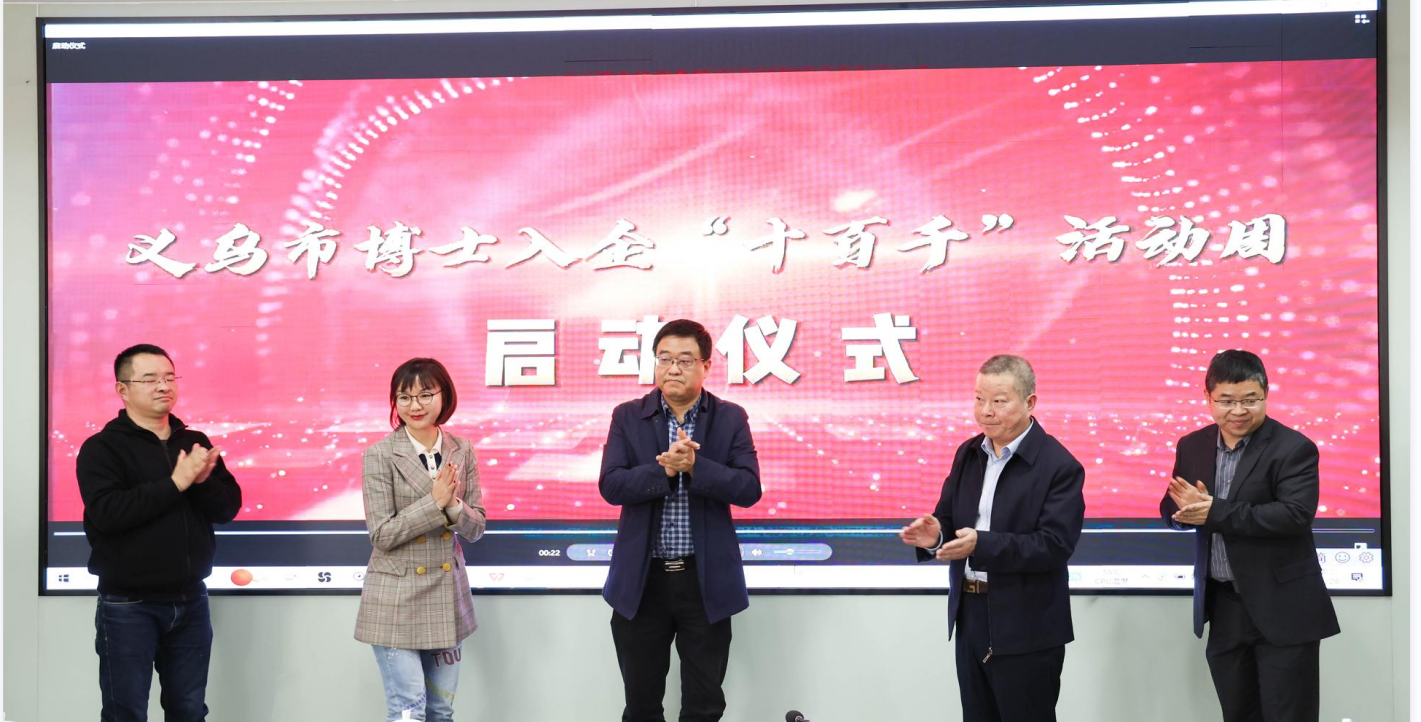 随后,陈英局长、丁国强局长、马广院长、李国花执行董事、许丹博士共同启动博士入企“十百千”活动周。