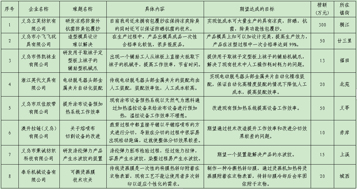 地方部分技术创新需求清单