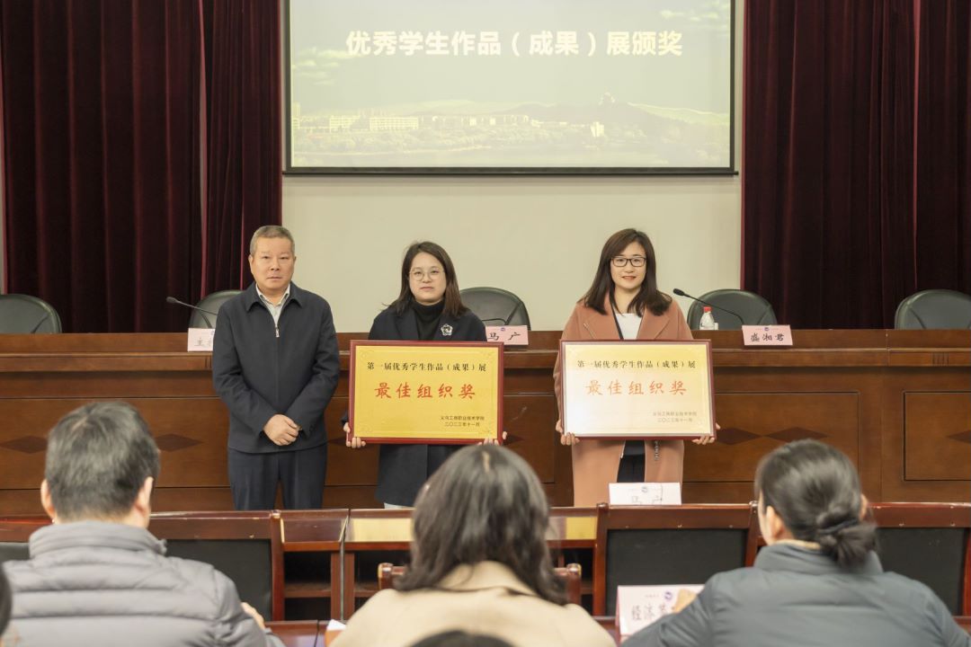 校领导为第一届优秀学生作品(成果)展获奖单位和师生颁奖