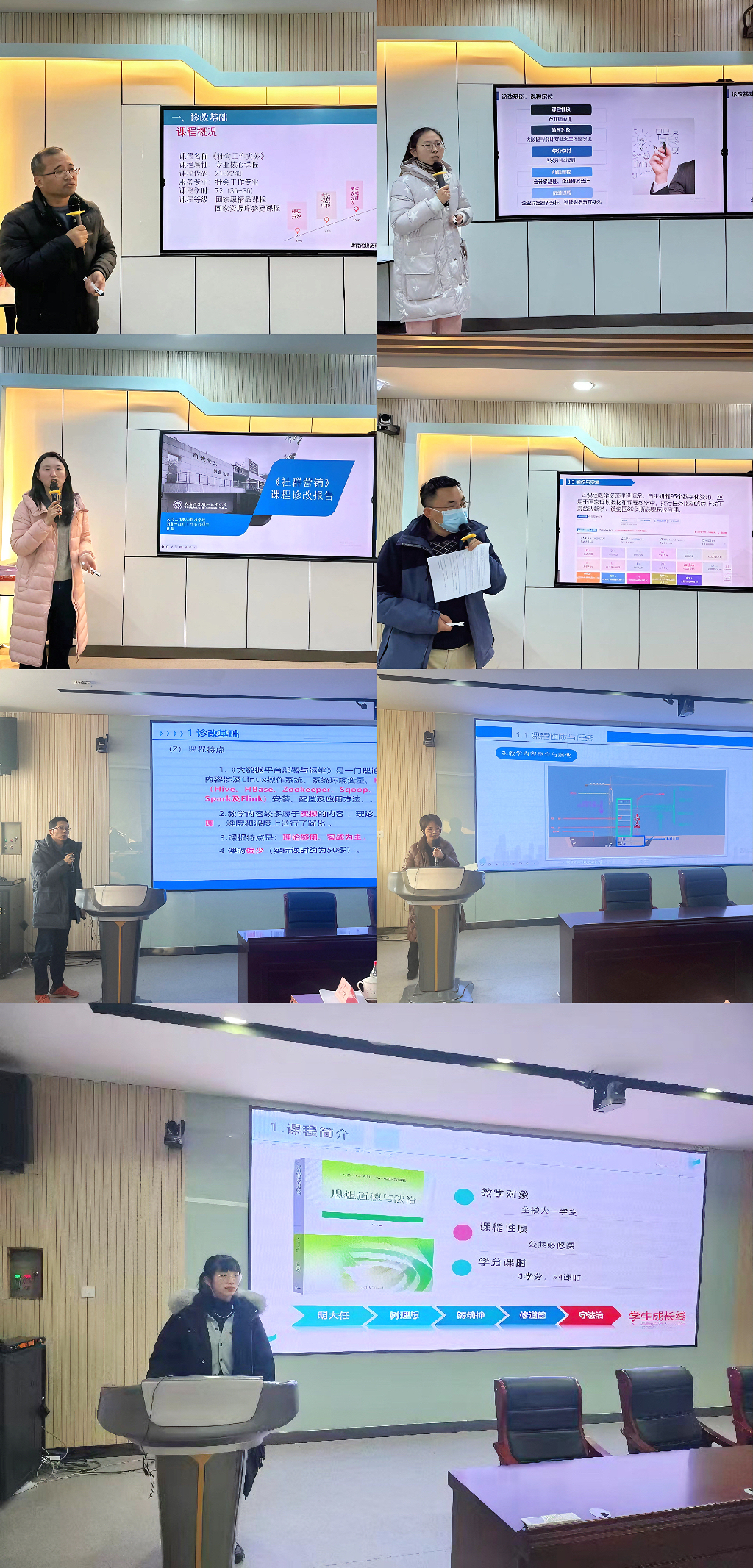 汇报会现场,专业机构负责人、课程负责人围绕“诊改基础”“两链打造”“螺旋运行”“成效思考”四个方面展开,对专业和课程的建设基础、内涵式发展、思政元素融入、产教融合深度等方面进行了论述。结合目标链、标准链“双链”,对课程和专业发展的优劣势以及面临的机遇挑战进行了细致分析,明确了建设目标及标准。同时,依据“8”字诊改模型,具体阐述螺旋推进诊改的路径和做法,并对专业和课程建设的成效及问题进行了思考与总结。