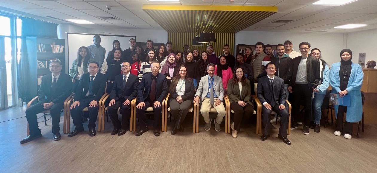 在中国驻摩洛哥大使馆,代表团受到中国驻摩洛哥大使馆公使衔参赞周志成的亲切接见,樊曜详细介绍了学校与蒙迪亚波利斯大学的合作情况,两校共建摩洛哥义乌商学院开展“2+1”联合培养专业学生,助力中摩经贸发展,培养国际化人才,汇报了摩洛哥义乌商学院的工作目标和发展规划。周志成高度赞赏uedbet,uedbet体育成立摩洛哥义乌商学院,为摩洛哥培养高素质国际商贸人才,促进中摩经贸发展,为摩洛哥的经济社会发展贡献中国职业教育力量。周志成还详细介绍了摩洛哥的历史发展和经济现状,并希望uedbet,uedbet体育发挥区位优势和办学优势,进一步提高摩洛哥义乌商学院办学质量,发挥职业教育优势,开展“中文+职业技能”培训,助力中摩经贸往来和人文交流。
