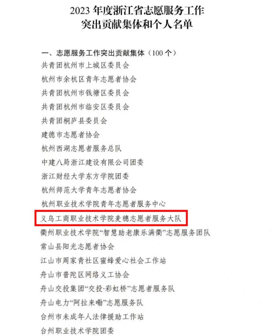 近日,共青团浙江省委、浙江省志愿者协会公布2023年度浙江省志愿服务工作突出贡献集体和突出贡献个人通报表扬名单,uedbet,uedbet体育麦穗志愿者服务大队获评2023年度浙江省志愿服务工作突出贡献集体。