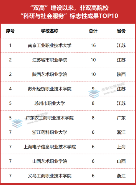 近日,高职发展智库发布《“双高计划”科研与社会服务成绩单》,对首轮“双高计划”建设期间(2019-2023年)全国高职院校的科研与社会服务成果进行统计。在榜单中,学校位列全国高职院校第23名、非国家双高院校第7名、浙江省高职院校第7名。