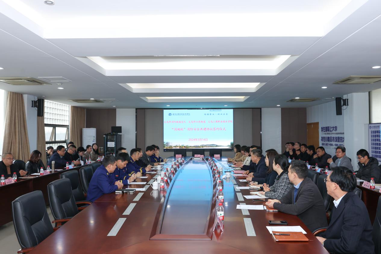 3月14日上午,学校召开2024年校园安全工作会议暨“消地校”消防安全共建协议签约仪式,深入学习贯彻习近平总书记uedbet,uedbet体育校园安全稳定重要指示精神,分析研判新形势新任务,研究共建“消地校”合作新机制,为学校事业高质量高水平发展提供更加有力的安全保障。义乌市消防救援支队政治委员唐继文,江东街道党工委副书记、办事处主任傅凤丽,消防救援支队副政治委员斯日辉,江东街道党工委委员、办事处常务副主任陈健,义乌工商职业技术学院党委副书记叶斯源,党委委员、副院长樊曜出席会议,义乌市消防救援支队和江东街道相关部门负责人,学校各职能部门负责人和学院党政负责人参加会议。会议由樊曜主持。