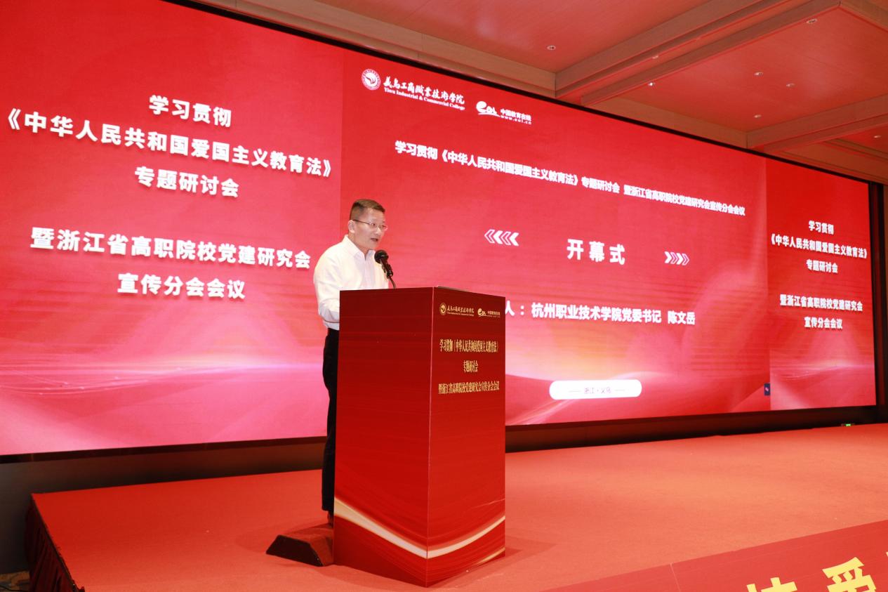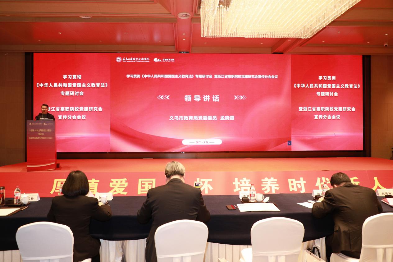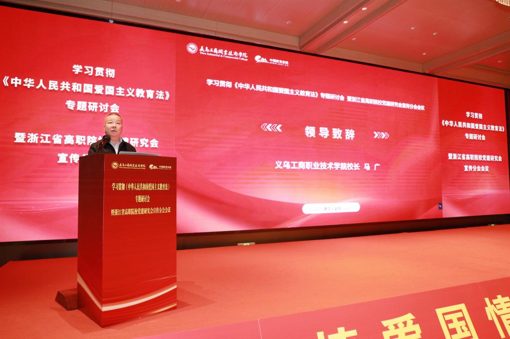 2023年10月24日,第十四届全国人大常委会第六次会议通过并颁布了《中华人民共和国爱国主义教育法》,决定自2024年1月1日起实施。为深入学习贯彻《中华人民共和国爱国主义教育法》,进一步加强新时代爱国主义教育,增强青年大学生的爱国主义情怀,3月21日-22日,由浙江省高职院校党建研究会宣传分会和义乌工商职业技术学院主办,中国教育在线、北京中教互联教育科技有限公司协办的学习贯彻《中华人民共和国爱国主义教育法》专题研讨会暨浙江省高职院校党建研究会宣传分会会议在义乌召开。