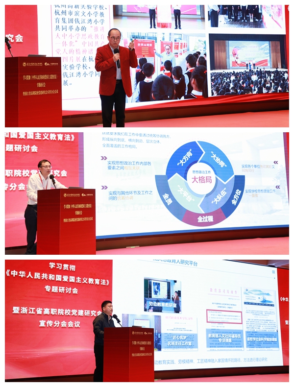 本次会议聚焦《中华人民共和国爱国主义教育法》,探讨法治环境下高职院校“推动和保障新时代爱国主义教育,为强国建设、民族复兴伟业统一思想、凝聚力量”的具体实践。浇花浇根,育人育心,在高职院校教育工作中大力贯彻实施爱国主义教育法,培养爱国之情、砥砺强国之志、实践报国之行,是高校立足立德树人根本任务,培养担当民族复兴大任的时代新人的应有之义。各高校要以习近平新时代中国特色社会主义思想为指导,提高政治站位,充分发挥思想政治理论课的主渠道作用,开展主题鲜明、形式多样的校园文化活动,将青年爱国主义教育实践深深融入社会主义现代化建设的伟大事业之中,确保爱国主义教育更好地体现时代性、把握规律性、富于创造性,不断开创新时代高职宣传思想文化工作新局面,为现代职业教育高质量发展贡献浙江力量。