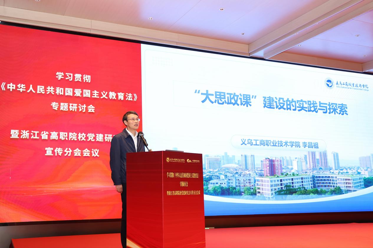 会上,党委书记李昌祖以《“大思政课”建设的实践与探索》为题,介绍了义乌工商职院“大思政课”建设的基础和举措。李昌祖指出,“大思政课”建设是思政理论课守正创新发展的最新成果形式,是进一步完善大思政格局的战略性举措,是党的十八大以来思政理论课、课程思政和日常思想政治教育一体化推进的顶层设计。“大思政课”建设是新时代高校履行立德树人根本任务的基本路径,也是高校事业发展的重要组成部分。他从“思政课程建设的特色格局是‘大思政课’建设的重要支撑、课程思政建设是‘大思政课’建设的增值基础、大学生思想政治教育的生动局面是‘大思政课’建设的重要基础、校地共融共建是‘大思政课’建设的特色基础”四个维度阐释了学校“大思政课”的建设基础。