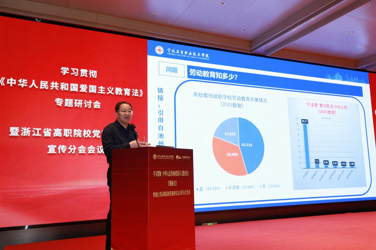文化素质教指委专委会副主任委员俞立军作题为《高职院校劳动教育的浙江实践与劳动文化建设》的主题报告。