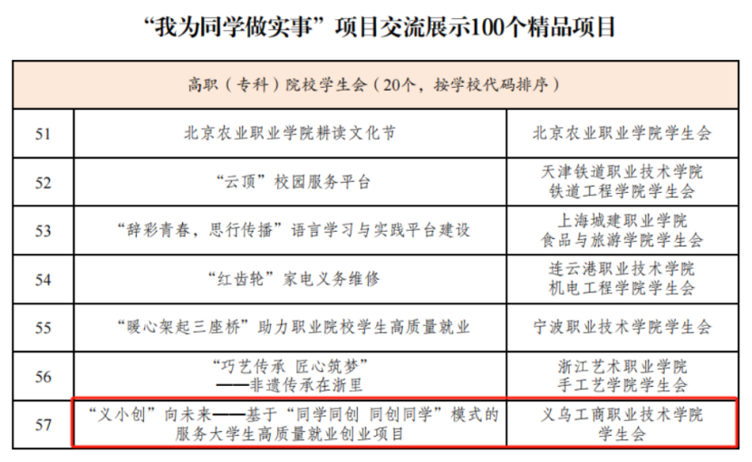 本次活动共吸引1724所高校的3581个服务同学项目参与。经学校自荐、省级推报、全国遴选,uedbet,uedbet体育学生会的“义小创” 向未来——基于“同学同创 同创同学”模式的服务大学生高质量就业创业项目在入围展示的300个优秀项目中脱颖而出,获评全国高校学生会组织“我为同学做实事”100个精品项目(全国高职院校共20个)以及100个“最受同学欢迎”项目(全国高职院校共13个),并作为高职(专科)院校学生会精品项目唯一代表在闭幕式上公开展演。