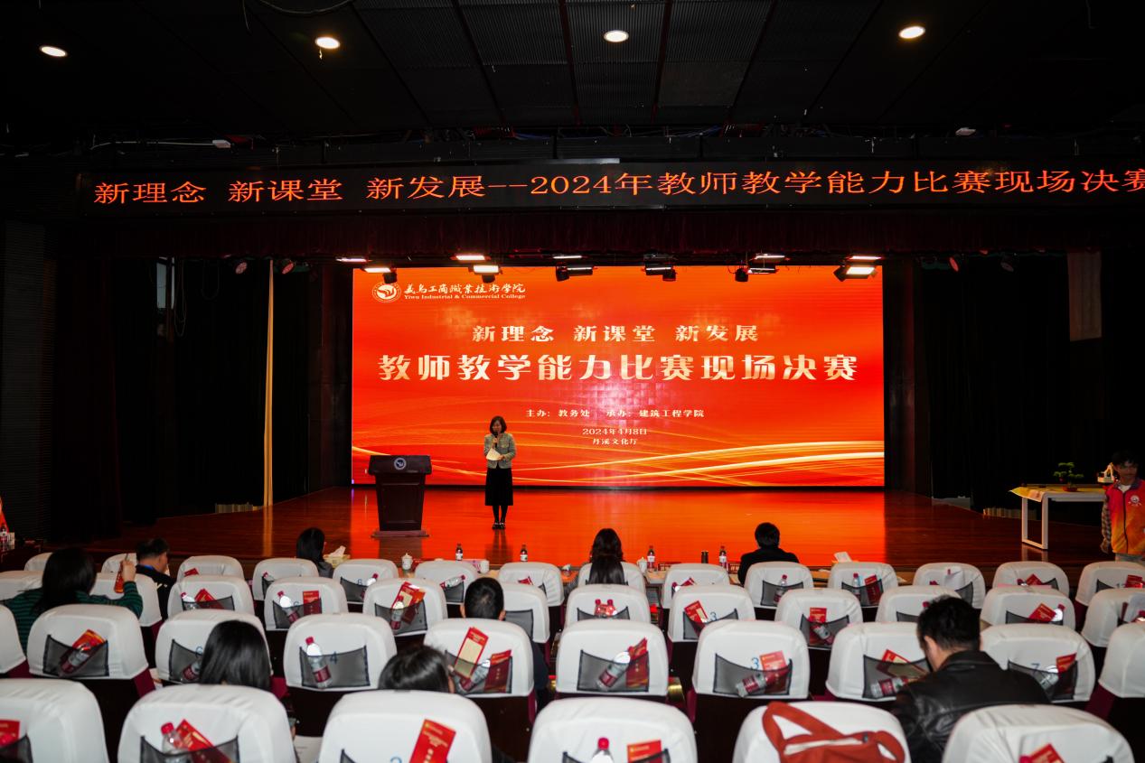 2024 年学校教师教学能力比赛现场决赛在丹溪文化厅顺利举行。 院长马广、副院长盛湘君、教务处、教育督导处、二级学院相关领导、 学校督导员及骨干教师共 200 余人现场观摩。比赛特邀校外资深专家和各二级学院教学工作负责人担任现场评审。