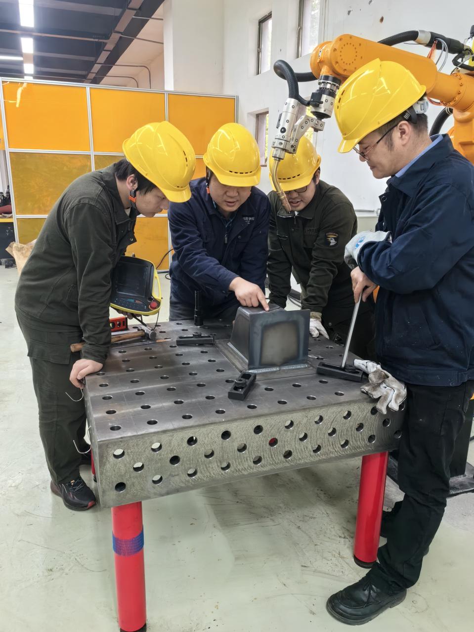 本赛项竞赛内容由理论知识考试、手工焊接技能考核和机器人焊接技能考核三个模块组成,均为线下进行。理论竞赛项目考核产业端机器人焊接工艺、操作与设备维护、质量检验和生产管理等,手工焊接技能考核要求选手按图纸要求进行试件的打磨、装配和焊接等;机器人焊接技能考核要求选手按图纸要求进行试件的打磨、装配和焊接等,同时考核安全生产和环境整洁。