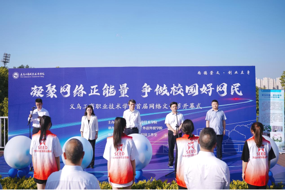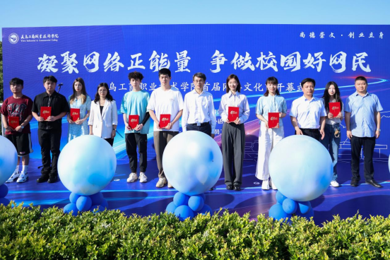 开幕式上表彰了2022-2023年度“义乌工商职业技术学院”强国号优秀网络作品及获奖者,《期待与你再次相遇》等16件作品的作者代表上台接受表彰。学习强国号是“学习强国”融媒矩阵的重要组成部分,是壮大主流舆论、唱响主旋律、弘扬正能量的重要途径和有力抓手。学校将继续用好“学习强国”这一重要网络思政平台,打造网络思政最大“同心圆”,构筑铸魂育人新生态。