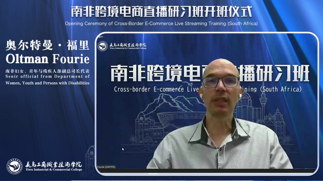 开班仪式采用线上线下同步进行,吸引了众多嘉宾的参与。浙江省自由贸易发展中心培训部部长盛炎平,义乌工商职业技术学院副校长樊曜,南非妇女、青年与残疾人部副部长奥尔特曼·福里,南非国家青年发展联盟副主席卡拉博·莫哈莱,以及义乌工商职业技术学院国际交流学院负责人及参加培训的学员共同出席,仪式由外语外贸学院负责人主持。