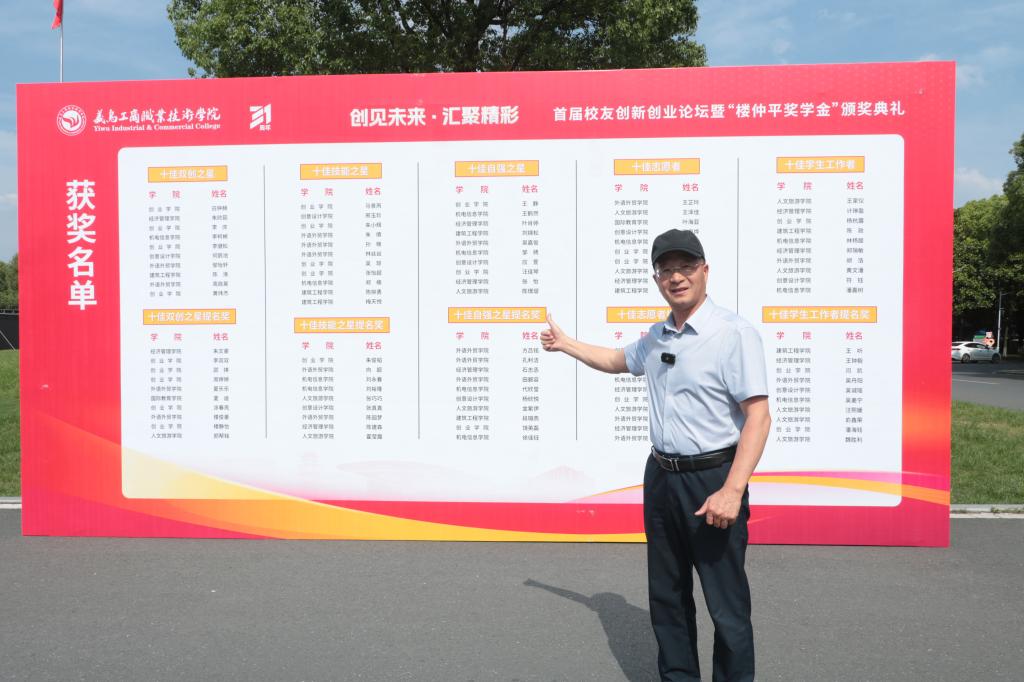 五月繁花似锦,校友纷至沓来。5月19日下午,在庆祝办学31周年之际,学校首届校友创新创业论坛与“楼仲平奖学金”颁奖典礼在水上报告厅隆重举行。院长马广,党委副书记叶斯源,党委委员、办公室主任高燕,校友总会会长何少庆,义乌市人社局党委委员龚希明出席颁奖典礼。活动由党委委员、副院长徐美燕主持,校友代表、获奖师生共计500人见证了这一盛事。