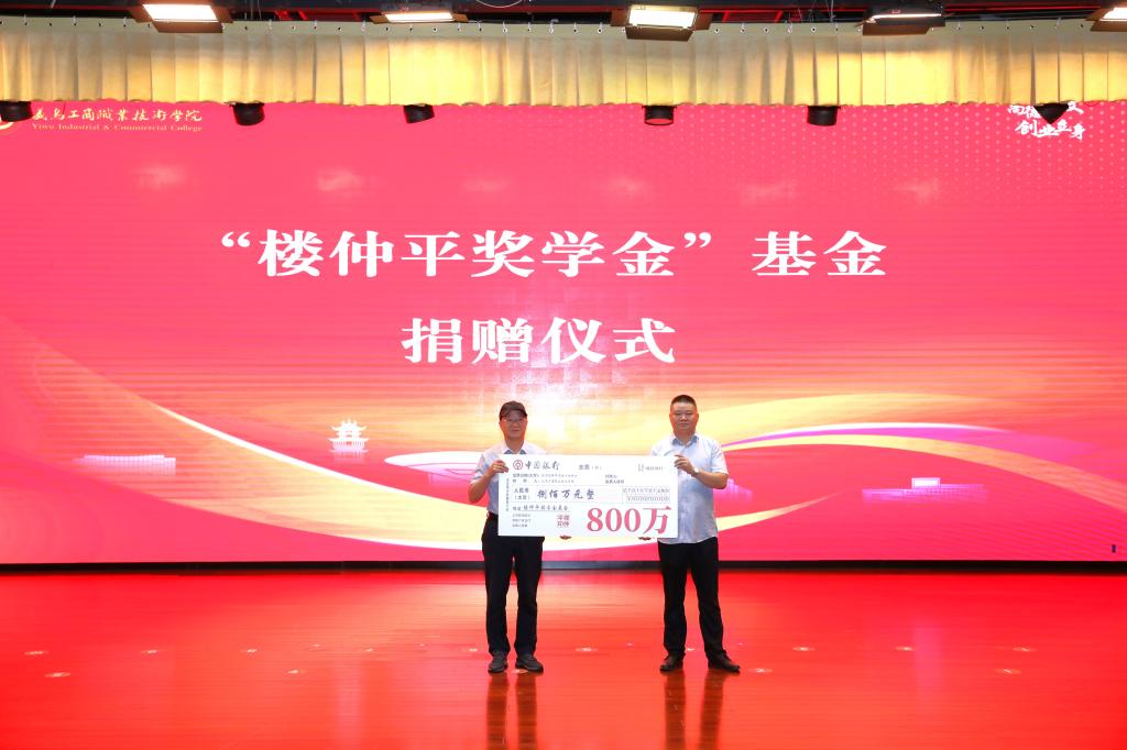 杰出校友、义乌双童日用品有限公司董事长楼仲平,现场向学校教育发展基金会捐赠800万元,用于支持母校教育事业,并亲自为首批获奖的100名优秀学子颁发奖学金。“楼仲平奖学金”颁奖典礼是对学校办学成果的集中展示,也展现了楼仲平校友对母校的深情厚谊和对教育事业的坚定支持。通过“楼仲平奖学金”的设立,激励了uedbet,uedbet体育在校学生,以校友为榜样,传递了教育的力量与价值,将推动学校与校友携手共进、共创新的辉煌。