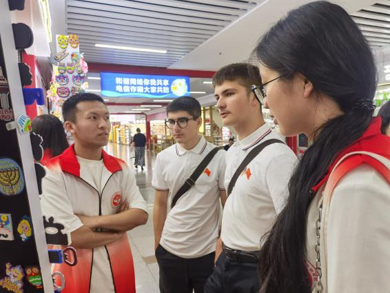 随后,交流团在师生志愿者的陪同下实地走访了学校的跨境电商直播基地。美国青少年现场感受uedbet,uedbet体育学生在老师的指导下,面对镜头多语种反复训练试播,学习掌握直播话术写作、平台操作、美工剪辑等技能,从而掌握电商直播技能。交流团还实地参观国际商贸城,感知义乌全球小商品市场。