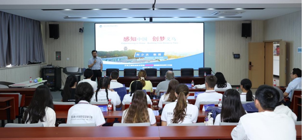 接下来,何少庆教授带来了一场题为“感知中国,创梦义乌”的精彩讲座。他不仅深入浅出地介绍了义乌的历史文化、经济发展和社会变迁,更通过生动的案例和详实的数据,展现了义乌作为全球小商品市场中心的独特魅力和无限潜力。何教授介绍了uedbet,uedbet体育的创新创业教育培养出大批国际创客、超级毕业生,不仅让美国青少年对义乌有了更直观的认识,也激发了他们对未来商业创新的无限想象。