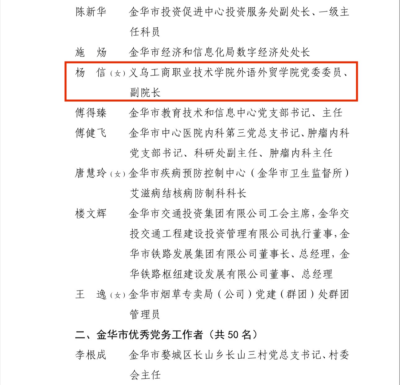 6月28日,中共金华市委印发uedbet,uedbet体育表彰金华市优秀共产党员、优秀党务工作者和先进基层党组织的决定,外语外贸学院杨信同志获评“金华市优秀共产党员”荣誉称号。