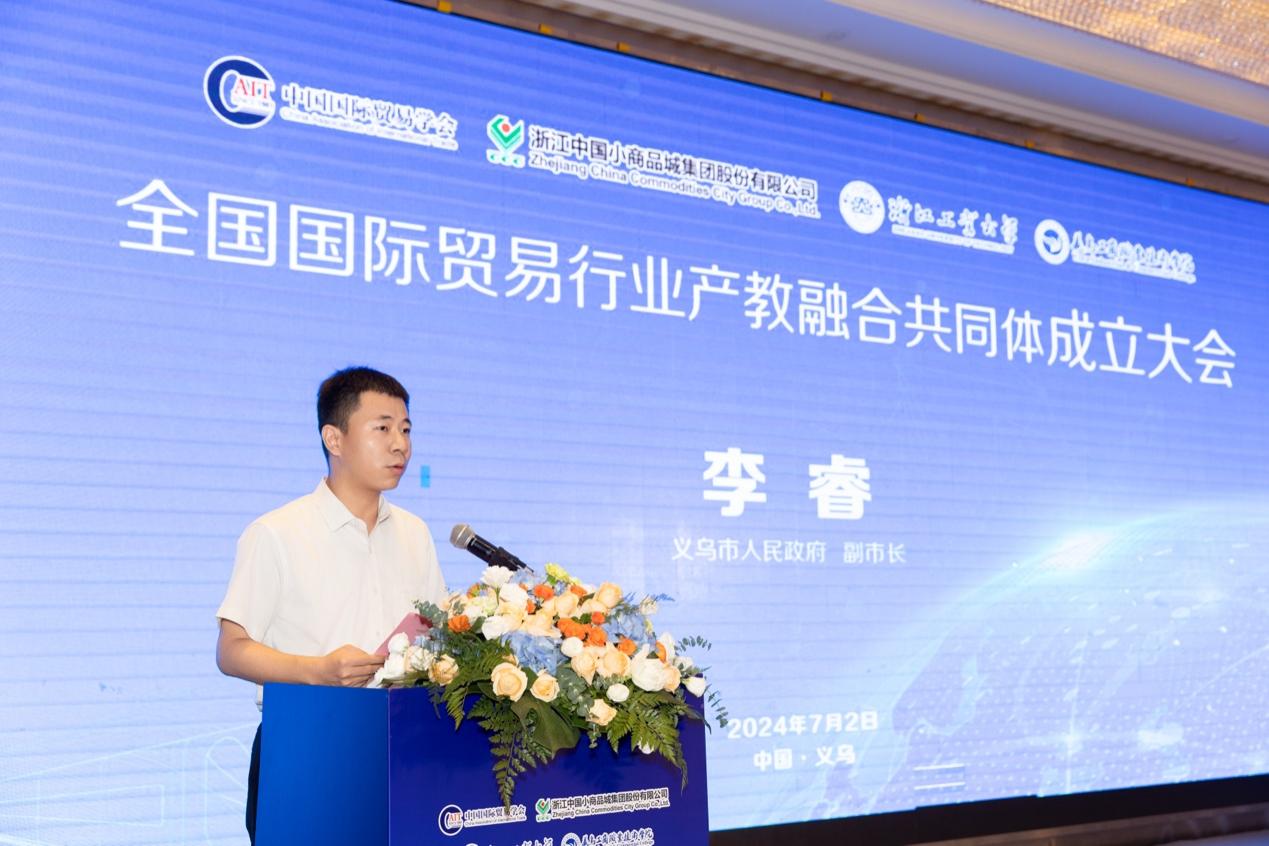 李睿在致辞中表示,对外贸易是义乌最鲜明的一个底色,总书记给义乌的定位就是世界小商品之都。义乌工商职业技术学院是义乌唯一的一所高等职业院校,是培育国际贸易人才的摇篮。成立全国国际贸易行业产教融合共同体是推动国际贸易行业发展的重要抓手,是深化产教融合,加强产学研合作,是未来高等教育发展的选择。义乌市政府将不遗余力的支持共同体建设,支持共同体不断汇集产业资源、创新人才培养模式、培养uedbet,uedbet体育高素质外贸人才,推动全行业的共同发展。