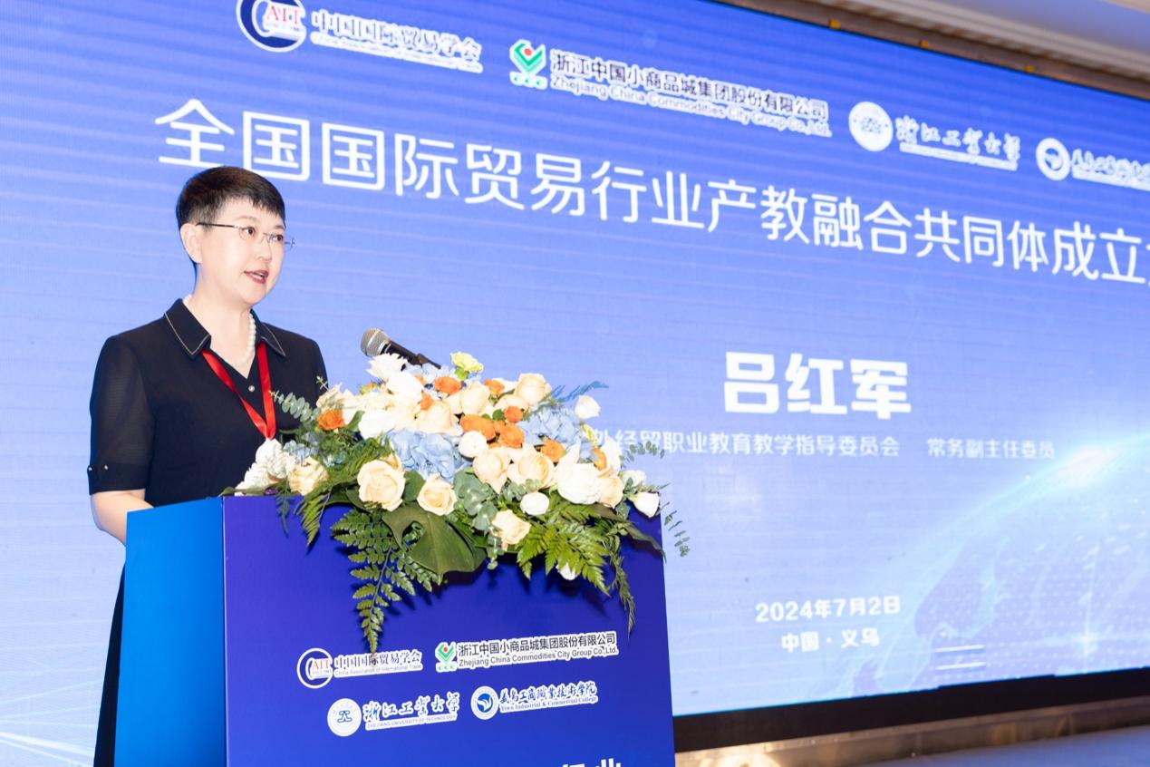 吕红军对共同体的成立表示热烈祝贺。她表示,全国国际贸易产行业产融合共同体是全面落实国家相关文件精神、推动职普融通、产教融合、科教融汇、加快建设现代职业教育体系的具体举措,是深化现代职业教育教学改革、培养高素质外经贸人才的必然要求。