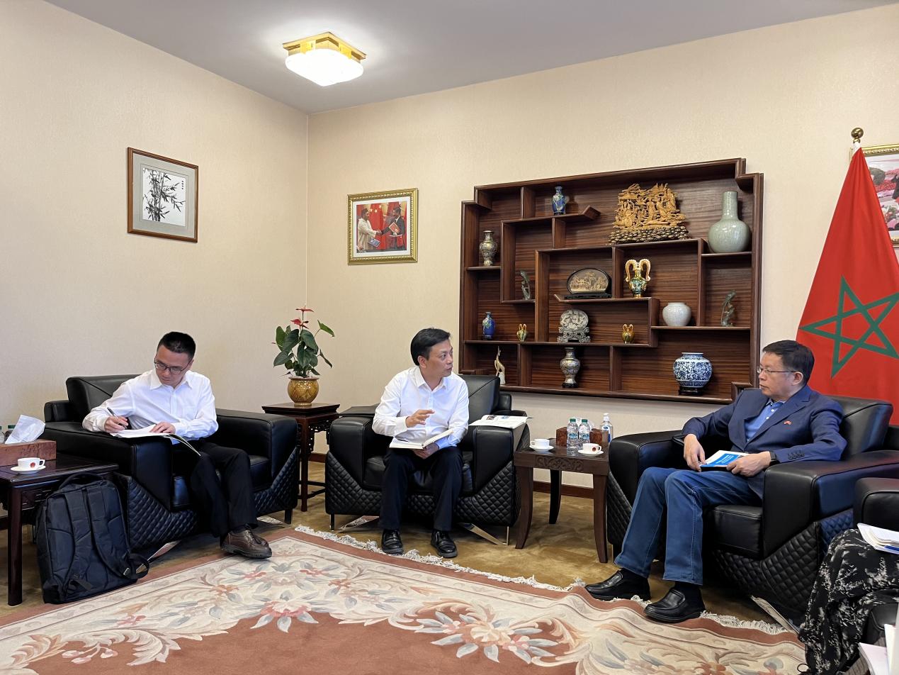 叶斯源向我国驻摩洛哥大使李昌林汇报摩洛哥义乌商学院办学工作