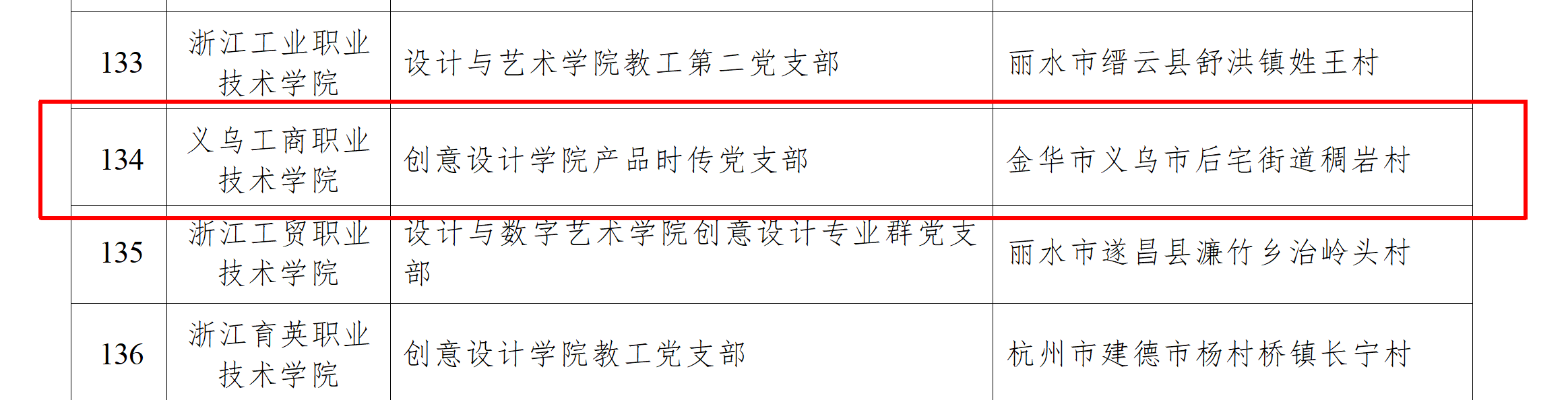 近日,中共浙江省委教育工委发布全省高校“百个艺术院系支部联村共建”名单,学校创意设计学院产品时传党支部与义乌市后宅街道稠岩村党支部党建联建项目成功入选。
