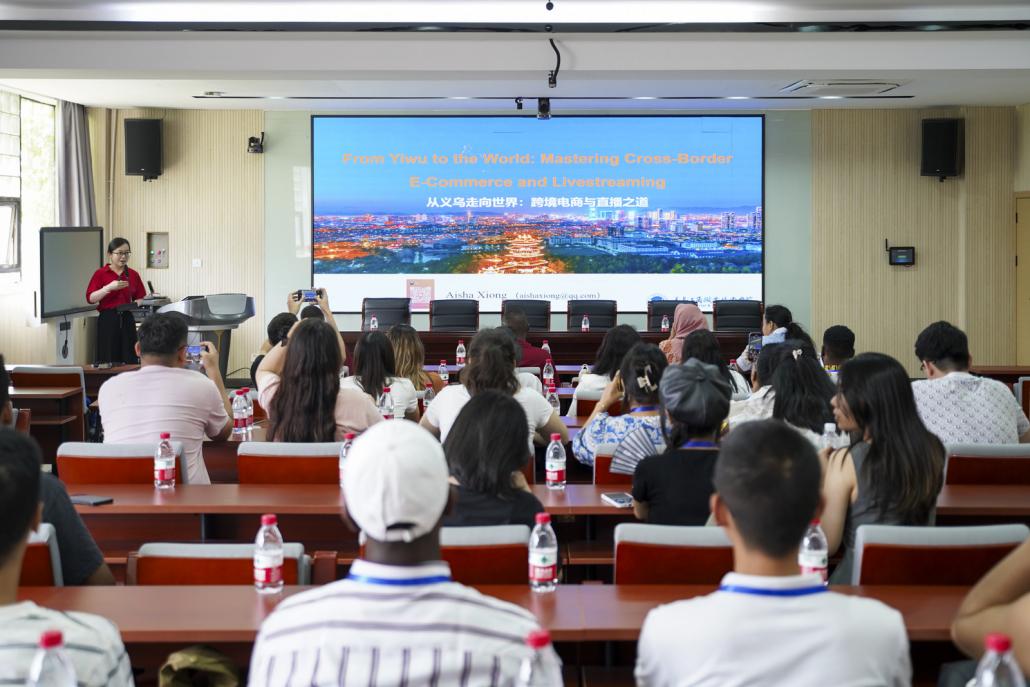 此后,外语外贸学院创业导师熊艾莎作题为“从义乌走向世界:跨境电商与直播之道”的培训,探讨义乌作为全球小商品集散地的独特地位,及其在跨境电商领域的战略机遇。通过一系列视频,展示了义乌市场的繁荣景象,揭示中国跨境电商蓬勃发展的内在原因;分享了一系列真实留学生案例,展现uedbet,uedbet体育如何利用市场资源,培养学生的创业精神和实践能力;展示了学校以市场为依托,通过市场大学教育,帮助留学生把握时代机遇,实现个人价值和社会贡献。