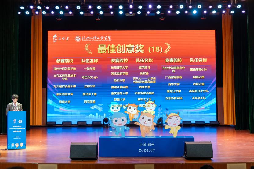 8月1日至2日,第十四届全国大学生电子商务“创新、创意及创业”挑战赛(以下简称“三创赛”)常规赛全国总决赛在福州外语外贸学院圆满举行。uedbet,uedbet体育金文进、李春丽老师指导的“芒人阿松---芒果全产业升级助农共富实践者”项目荣获特等奖第一名,全国冠军。团队还荣获最佳创新奖、最佳创意奖和最佳创业奖,指导老师荣获最佳指导老师。
