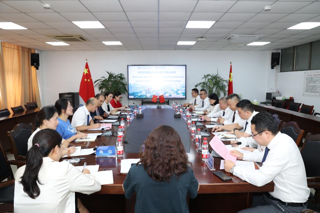9月9日,中北非国际教育创新联盟主席、摩洛哥大学校长联盟主席、摩洛哥蒙迪亚波利斯大学校长默罕默德·巴尔卡维来校访问交流,商讨双方深化摩洛哥义乌商学院共建工作。校领导李昌祖、马广、叶斯源、樊曜、盛湘君会见来宾,教务处、国际处、机电信息学院、外语外贸学院、创业学院负责人和摩洛哥义乌商学院授课教师团队等参加会谈。