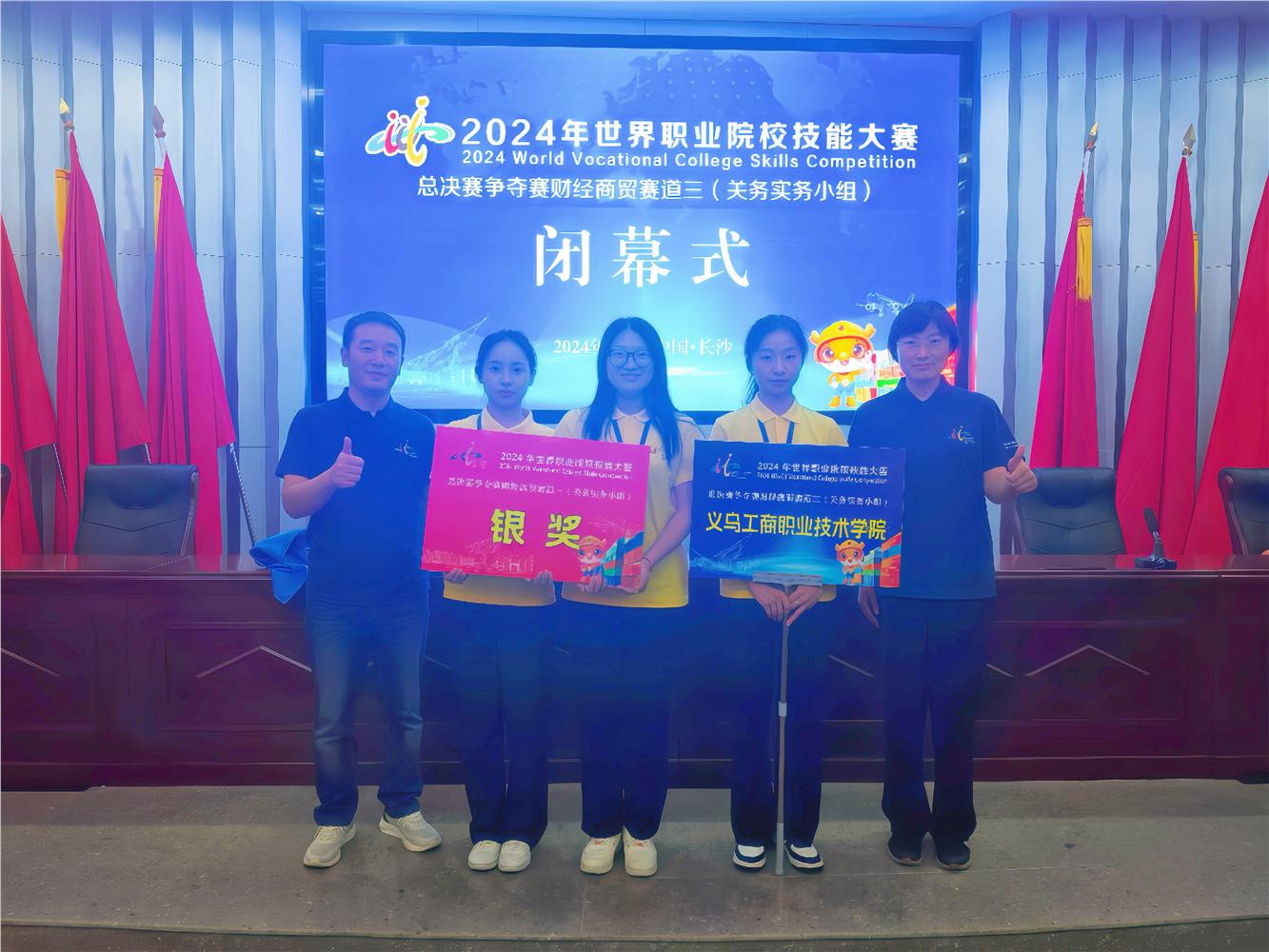 10月28日至31日,2024年世界职业院校技能大赛总决赛争夺赛关务实务赛项在长沙航空职业技术学院举行,共有来自全国56所院校的选手同台竞技。经过激烈角逐,uedbet,uedbet体育外语外贸学院朱简、叶丽芳老师指导的孙羽希、吴星雨、王思佳团队荣获银奖。
