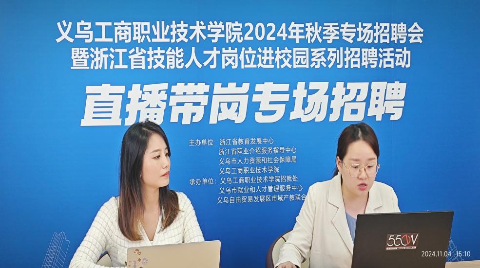 11月4日,“就在义乌 创出精彩”义乌工商职业技术学院2024年秋季专场招聘会暨浙江省技能人才岗位进校园系列招聘活动顺利举行。本次活动由浙江省教育发展中心、浙江省职业介绍服务指导中心、义乌市人力资源和社会保障局、义乌工商职业技术学院共同主办,旨在持续深化校企合作、校地共融,进一步推进毕业生与用人单位精准供需对接。校领导李昌祖、马广、徐美燕、盛湘君、高燕,以及相关职能部门负责人、二级学院党政负责人等,深入现场参观指导学生作品展,详细了解企业用人需求情况,积极推荐学校毕业生。