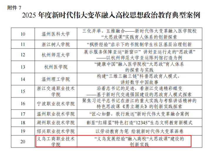 新时代伟大变革融入高校思想政治教育典型案例:《“义乌发展经验”融入高校“大思政课”建设的创新实践》(拟推教育部)