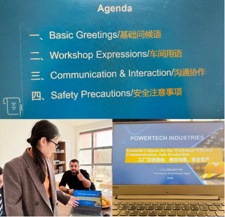 为促进文化融合与高效协作,学院教师团队还针对部分员工开展了“高效沟通与安全生产”汉语速成培训。内容涵盖基础问候语、车间用语、沟通协作以及安全注意事项等常用表达,帮助员工提升跨文化沟通能力。参与培训的员工Youssef表示:“这是我第一次系统学习汉语,非常实用也很有趣。希望通过培训,方便与中国同事交流,提高工作效率。同时做好小组成员的引导与监督。”他的感受充分体现了语言培训对企业运营和员工个人发展的双重助益。这一举措不仅提升了员工的基础汉语交流能力,也为中摩双方的合作奠定了更加稳固的语言基础,体现了“教随产出、落地生根”的实践理念。