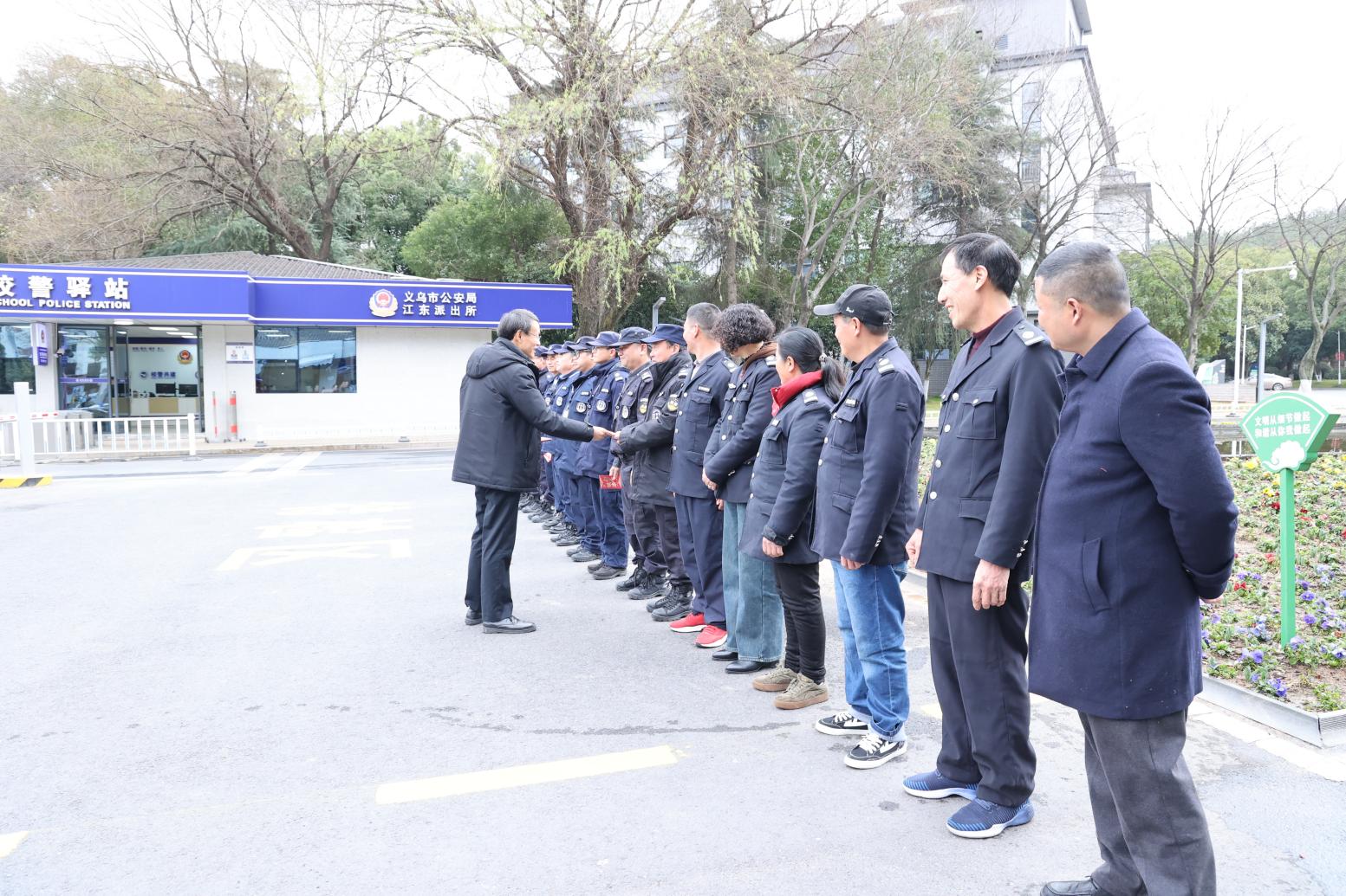 李昌祖一行首先来到学校正大门和校警驿站慰问了坚守岗位的安保人员,对他们坚守岗位的奉献精神,以及2024年为守护校园安全稳定作出的贡献表示感谢,并代表学校送上新春祝福。
