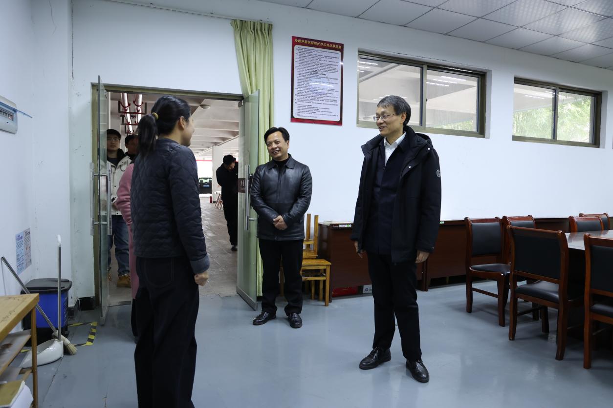 随后,李昌祖一行前往各学院慰问值班人员并进行亲切交谈,悉心询问了假期值班情况和他们的工作生活状况。他代表学校对坚守岗位的教职工表示感谢,并强调春节期间的安全稳定工作不容忽视,要求各单位务必做好值班值守,确保校园安全稳定。