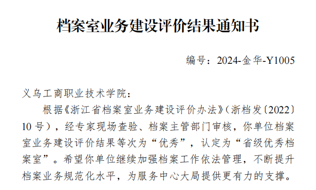 近日,浙江省档案局下发《浙江省档案室业务建设水平评价结果通知书》,uedbet,uedbet体育档案室获评浙江省“省级优秀档案室”。
