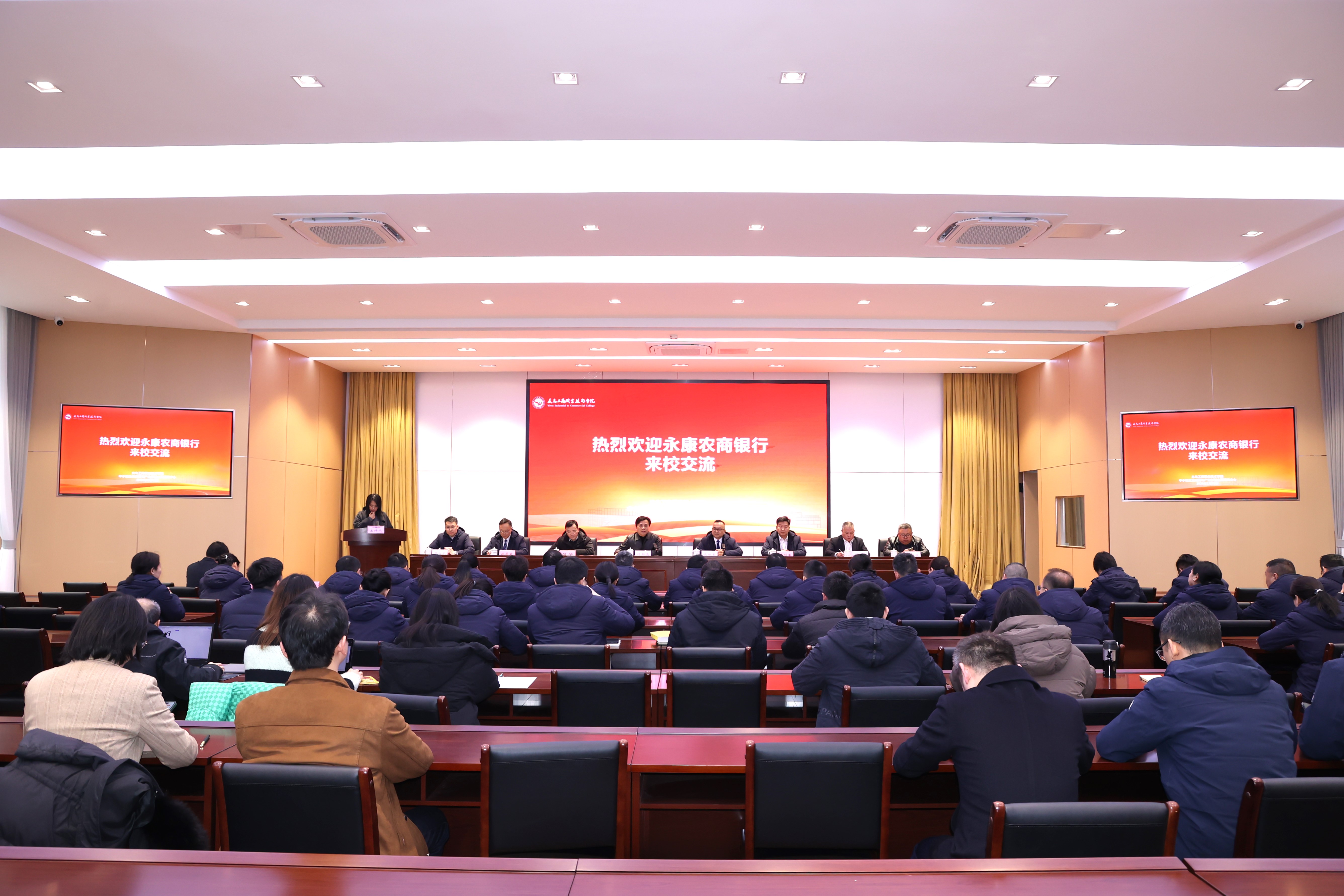 2月25日,永康农村商业银行党委书记、董事长沈旭勇率党委班子、支行及相关部室负责人45人到校考察交流,双方重点就深化银校合作、服务区域发展等展开深入交流。校党委副书记叶斯源、纪委书记吕华、经济管理学院相关负责人陪同考察并召开交流座谈会。学校金华社科智库中小微企业发展与产业创新治理研究中心团队成员、经济管理学院相关专业教师参加。