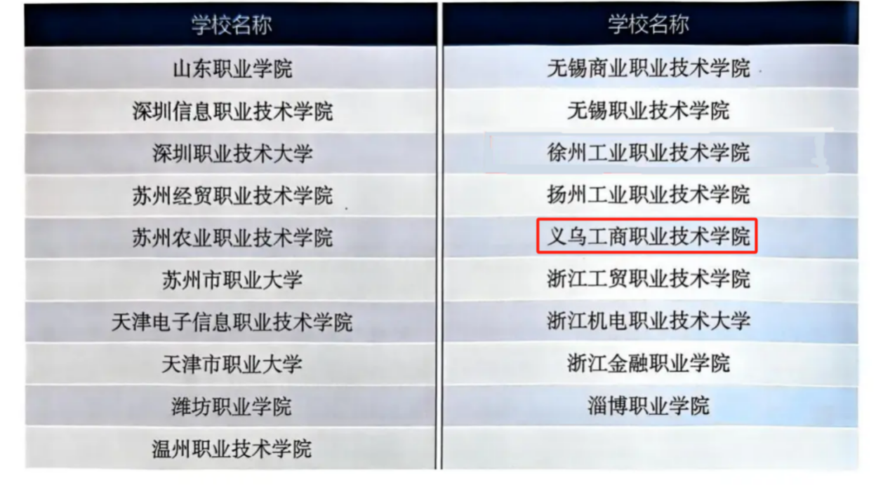 服务贡献卓越高等职业学校(东部地区)