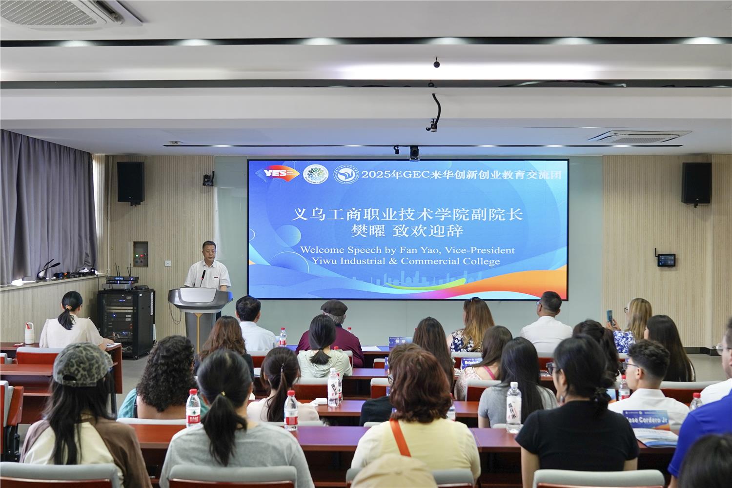 6月6日上午,“2025年美中教育联合发展协会来华创新创业教育交流团”开班仪式在uedbet,uedbet体育举行。来自美国佛罗里达州的美国师生齐聚义乌,开启为期12天的创新创业之旅。学校党委委员、副院长樊曜出席开班仪式并致辞,国际处、外语外贸学院相关负责人及工作团队参加活动,国际处处长主持开班仪式。