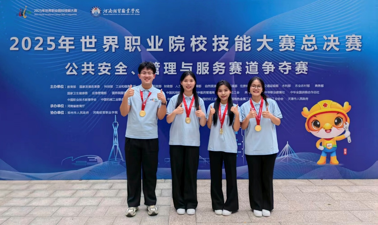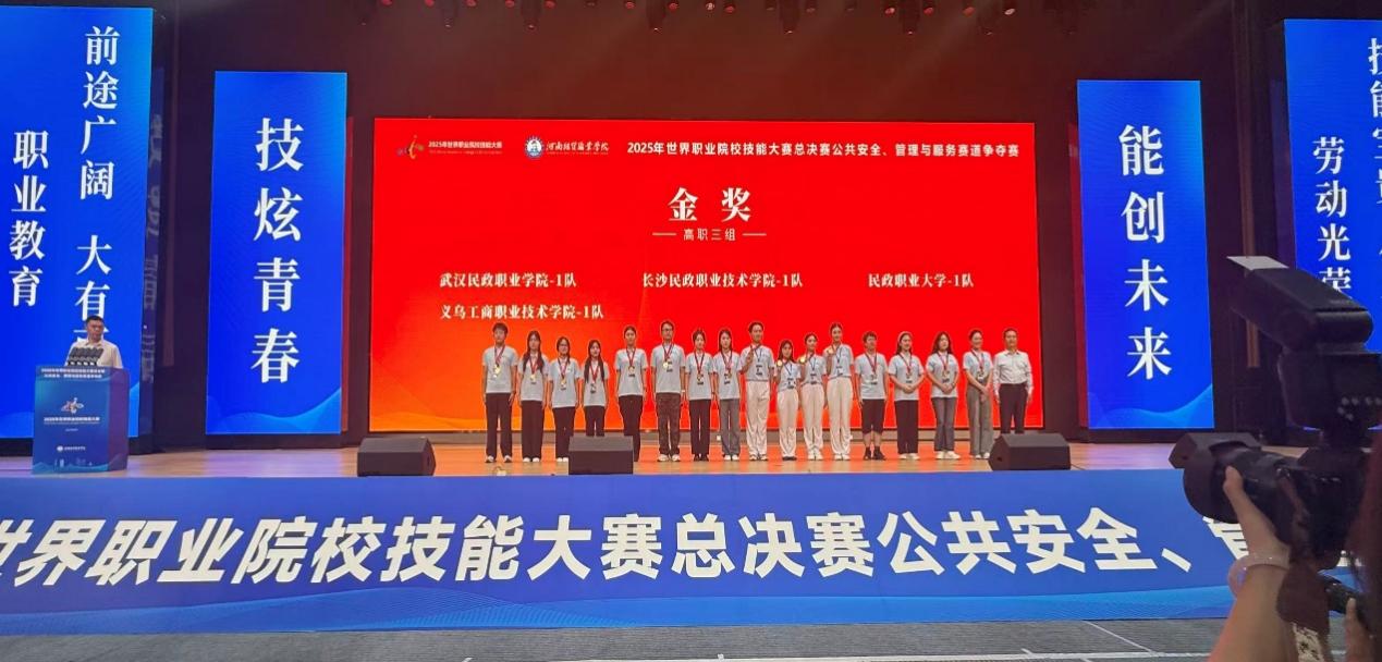 8月29日,2025世界职业院校技能大赛总决赛公共安全、管理与服务赛道在河南经贸职业学院圆满落幕,来自全国各地的职业院校选手展开了精彩的比拼。义乌工商职业技术学院人文旅游学院张鸣宇、季俊含两位教师指导的由学生王齐齐、潘雯卿、邵梦荧、王榆杰组成的参赛团队,凭借扎实的专业技能和默契的团队协作,一举斩获金奖!