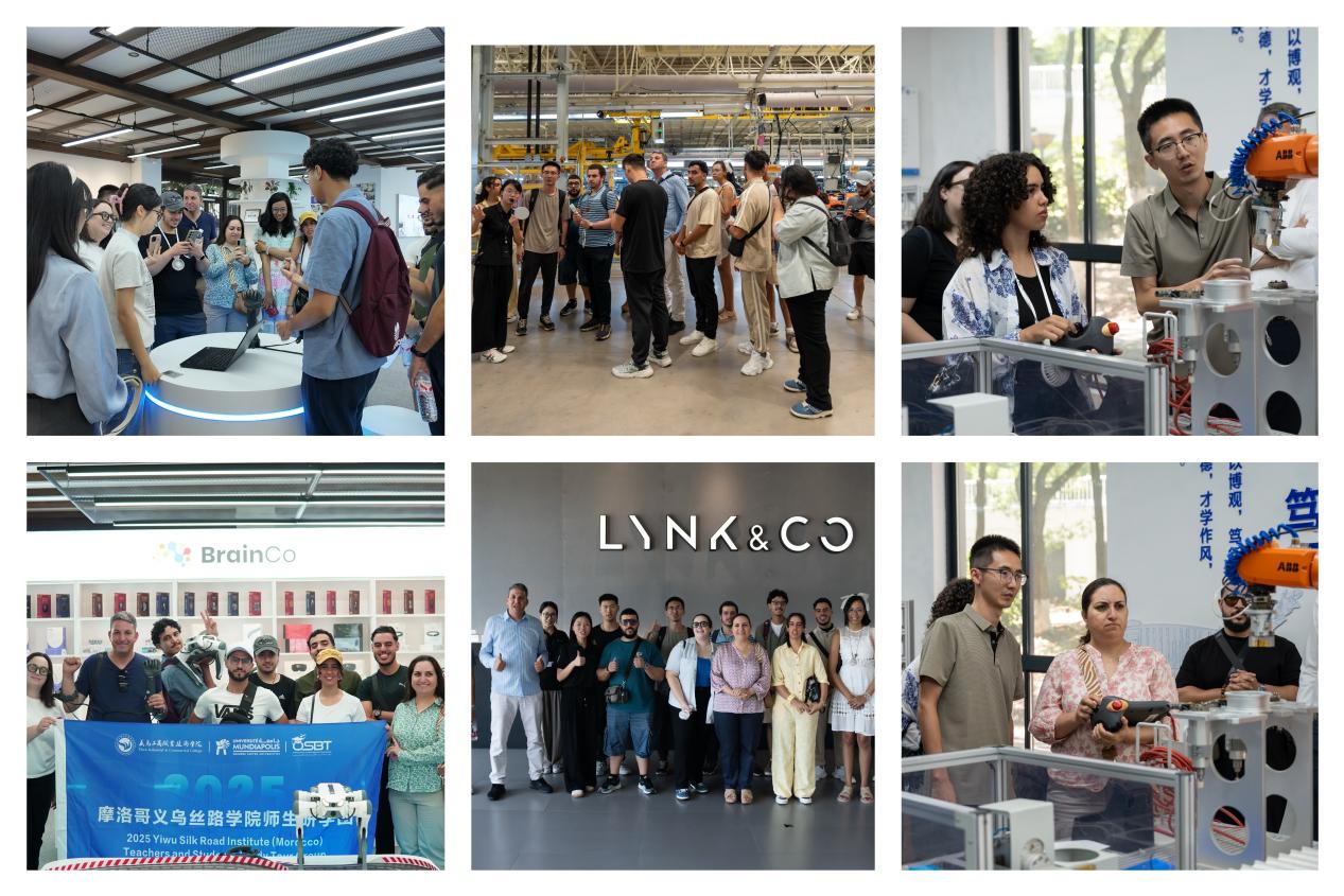 从智能制造到数字科技,浙江的创新实力让摩洛哥师生频频惊叹。研学中,师生们走进杭州“强脑科技”企业,近距离观察工业机器人的精准操作、脑机接口技术的前沿应用;来到义乌工商职业技术学院实训基地,亲手体验工业机器人编程、活字印刷术,感受前沿科技与传统文化的完美交融;参观“吉利汽车”校外实训基地,师生们见证了新能源汽车、动力电池的完整生产链条,奥米尼亚商业与技术学院教师拉比尔感慨:“中国的工业效率达到了‘极致’,对细节的把控和对技术的敬畏,值得我们学习。”