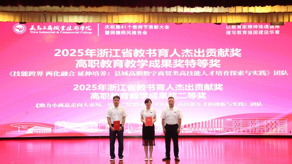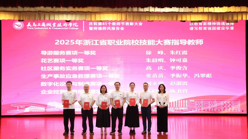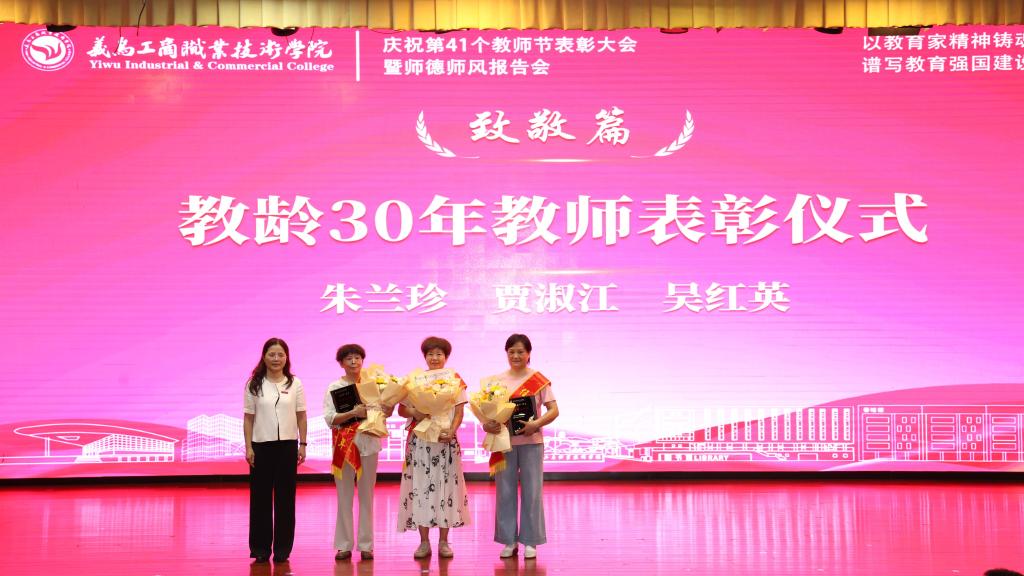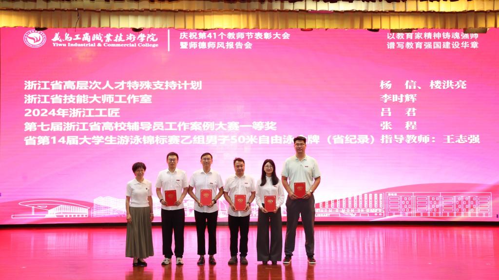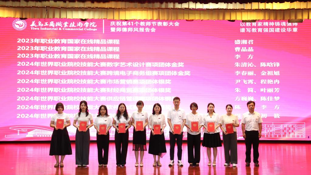 李昌祖强调,今天的大会不仅是庆祝教师节,表彰先进的大会,也是吹响建设“国内一流、国际有影响的特色鲜明高水平高职院校”的集结号,更是一次思想再统一、目标再聚焦、责任再压实的总动员。全校上下要强化全校“一盘棋”思想,瞄准定位、攻坚克难;全校教职工要进一步认识义乌工商,了解学校发展面临的内外形势和存在的短板,认清我们坚定走特色发展道路的决心,深入思考如何在学校的发展中找到个人成长的发力点。