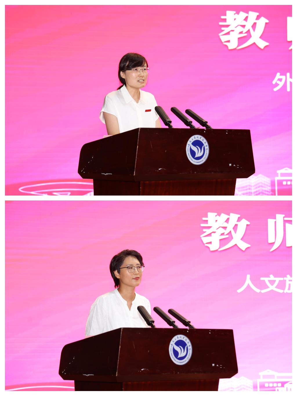 教师代表曹晶晶、路胜男发言,分享她们在教学、科研、育人工作中的心得,以及对新双高建设、教育强国建设的思考。