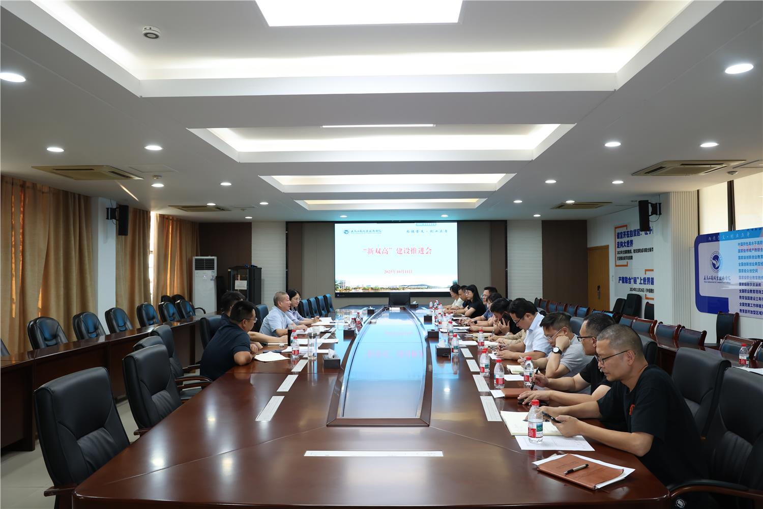 10月11日下午,学校召开“新双高”建设推进会,部署近期“新双高”建设工作。相关职能部门负责人,外语外贸学院、机电信息学院等相关教学科研部门负责人参加会议。院长马广出席会议并讲话,副院长盛湘君主持会议。