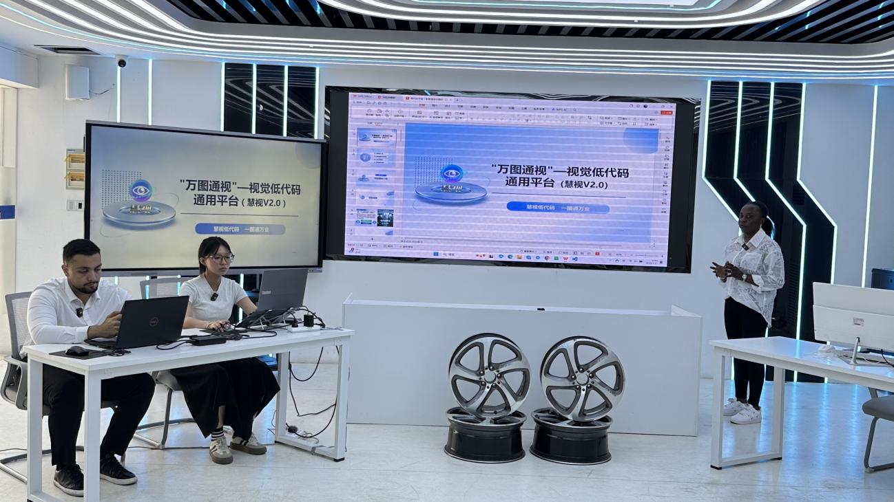 世界职业院校技能大赛作为全球职业教育领域的顶级赛事,其国际组比拼聚焦行业前沿技术与实际应用需求,参赛队伍涵盖全球顶尖职业院校与合作单位。备赛过程面临多重挑战:语言沟通上,工业视觉领域 “算子封装”“实时推理” 等专业术语易因母语差异产生理解偏差,团队靠 “即时翻译 + 技术 demo 同步演示” 校准,每轮方案讨论后反复核对细节,累计耗时超 20 小时规避信息误差;技术学习与训练中,2个月备赛期内,中外学生需快速掌握平台全栈低代码架构,每天开展8小时以上联合训练,针对轮毂数字多角度识别问题逐一拆解验证,团队始终以 “降低工业视觉应用开发门槛、推动 AI 技术普惠化” 为核心目标,将 “万图通视” 平台优势与行业实践深度融合,终在众多项目中脱颖而出。